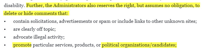 Rightfully, they set out articles of decorum for the page to prevent political discussion… but then hypocritically re-post a political message from Mr. Quirk. Now you may be thinking, it’s an election, no big deal right? Well, actually it is a big deal.
