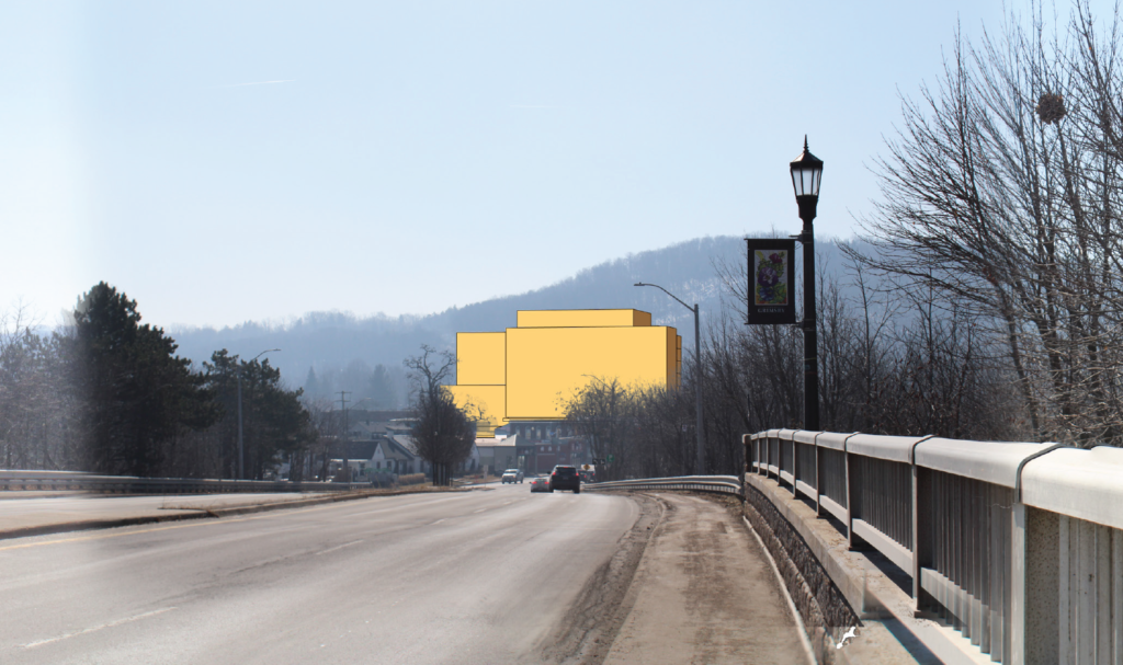 This is a photographic rendering from Christie Street prepared by consultants for The Woolverton development at Mountain & Elm. If a picture is worth a thousand words, this one rendering alone might be a novella.